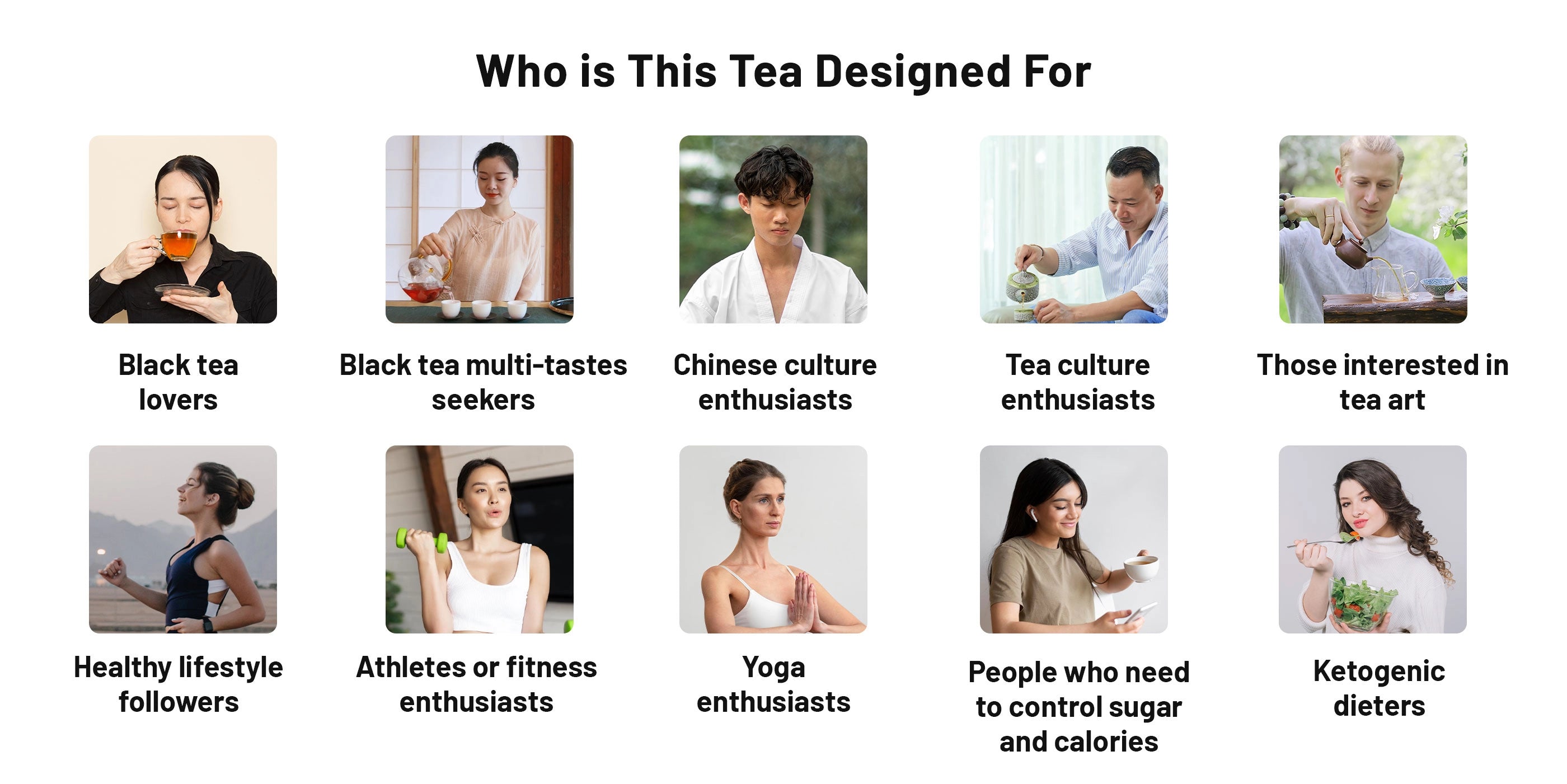 Savor four unique red teas, each boasting its own captivating aroma. From the floral hints of Souchong Tea to the honeyed essence of Yunnan Black Tea, the delightful fragrance of Yingde Black Tea, and the smoky allure of Wild Souchong Black Tea, each tea brings forth a different taste adventure.