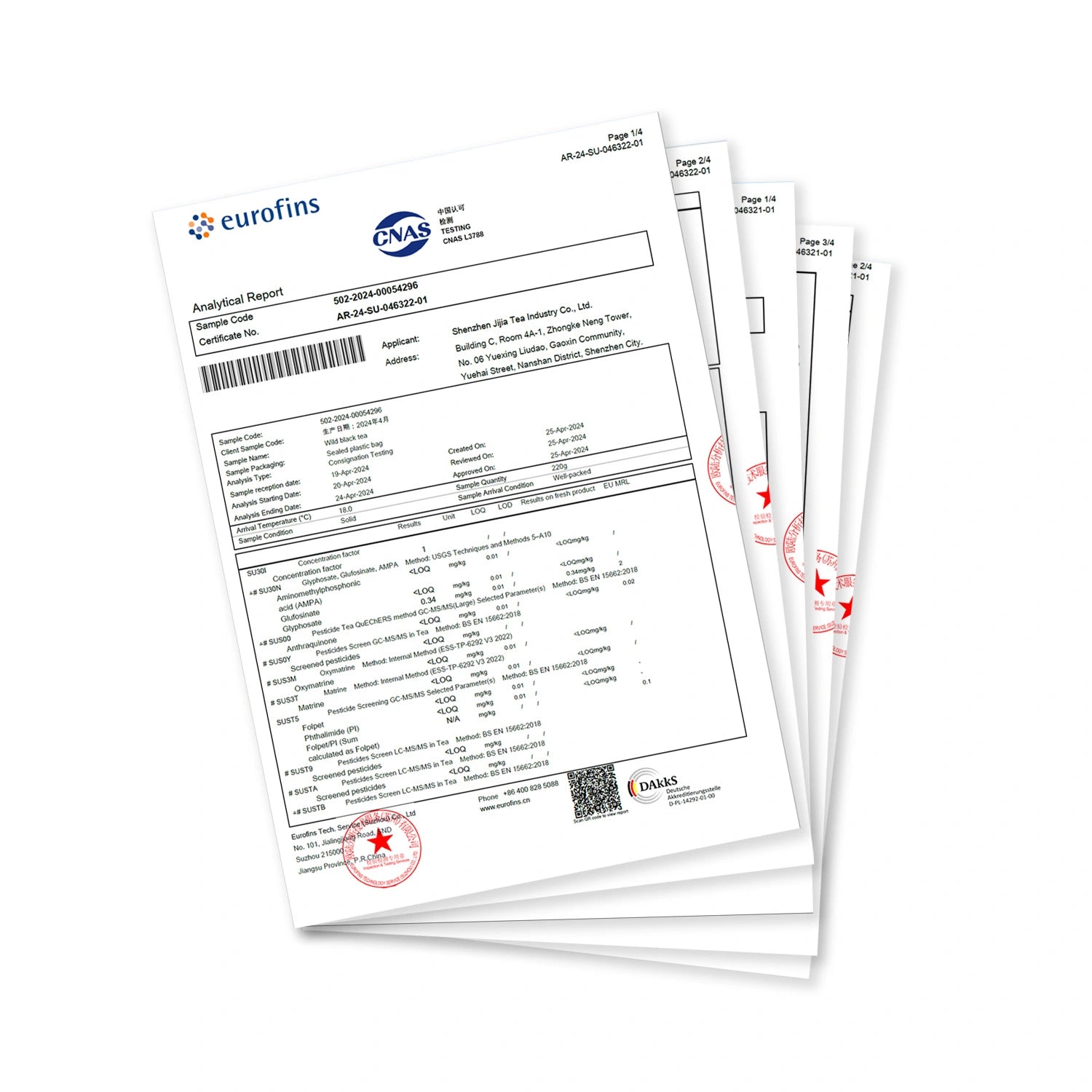 The tea has passed the EU food-grade pesticide residue standards.